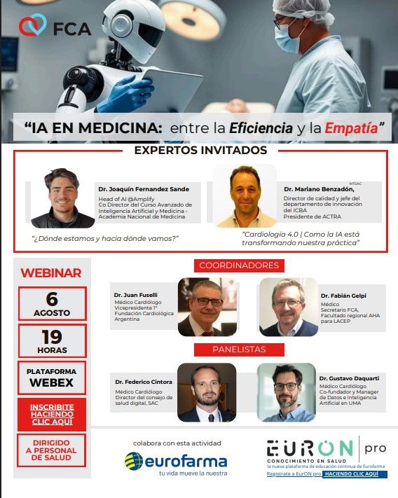 Este miércoles 6 de agosto a las 19 hs, vamos a estar conversando sobre cómo la inteligencia artificial está transformando la manera en que hacemos medicina, con foco en la cardiología. ¡No te lo pierdas! Estaremos: – Dr. Joaquin Fernandez Sande (Amplify | Academia Nacional de Medicina de Buenos Aires) – Dr. Federico Cintora (Consejo […]